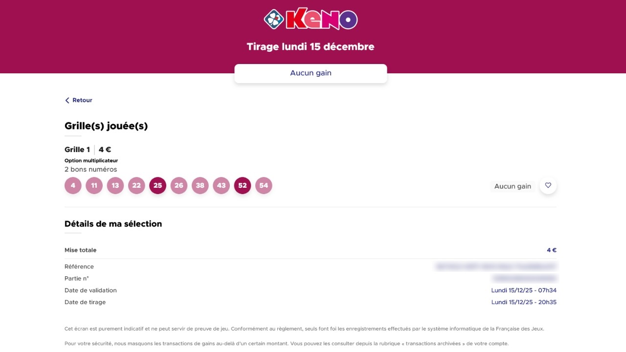 Je ne suis pas du tout un joueur de Keno, c'est aussi pour ça que j'ai voulu faire un petit test. En effet, je me suis abonné au Keno pendant une semaine (du lundi 15 décembre au dimanche 21 décembre 2025) soit 7 tirages avec l'option multiplicateur. J'ai donc dépensé 28 euros en espérant gagner gros. Alors, à votre avis, combien ai-je remporté ? La réponse dans cet article !